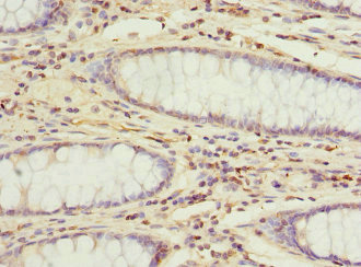 Immunohistochemistry of paraffin-embedded human colon cancer using CSB-PA890695DSR2HU at dilution of 1:100