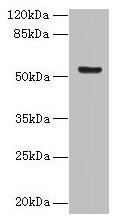 Predicted band size: 54 kDa