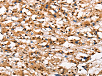 The image on the left is immunohistochemistry of paraffin-embedded Human gastric cancer tissue using CSB-PA932813(DGAT1 Antibody) at dilution 1/40, on the right is treated with synthetic peptide. (Original magnification: ×200)