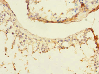 Immunohistochemistry of paraffin-embedded human testis tissue using CSB-PA006891ESR1HU at dilution of 1:100