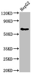 Lane 2: CSB-PA006926LA01HU (6μg) + HepG2 whole cell lysate (1mg)