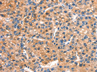 The image on the left is immunohistochemistry of paraffin-embedded Human liver cancer tissue using CSB-PA101358(DOCK1 Antibody) at dilution 1/25, on the right is treated with synthetic peptide. (Original magnification: ×200)