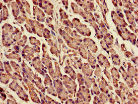 Immunohistochemistry of paraffin-embedded human pancreatic tissue using CSB-PA007134LA01HU at dilution of 1:100