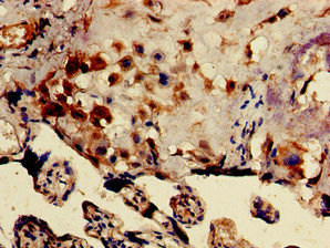 Immunohistochemistry of paraffin-embedded human placenta tissue using CSB-PA897524LA01HU at dilution of 1:100