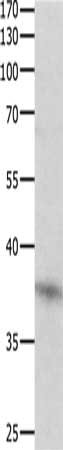 Gel: 10%SDS-PAGE, Lysate: 40 μg, Lane: Jurkat cells, Primary antibody: CSB-PA229389(DUSP12 Antibody) at dilution 1/500, Secondary antibody: Goat anti rabbit IgG at 1/8000 dilution, Exposure time: 20 seconds