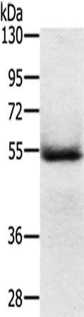 Gel: 8%SDS-PAGE,Lysate: 40 μg,,Primary antibody: CSB-PA083210(EDAR Antibody) at dilution 1/200 dilution,Secondary antibody: Goat anti rabbit IgG at 1/8000 dilution,Exposure time: 2 minutes