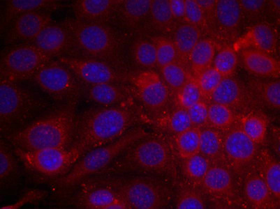 Immunofluorescence staining of methanol-fixed MCF cells using EGFR(Ab-1070) Antibody.
