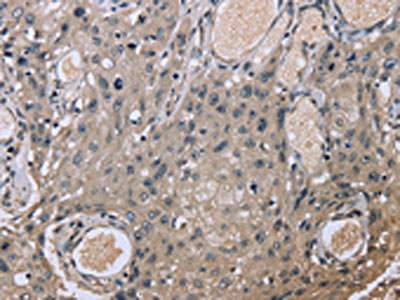 The image on the left is immunohistochemistry of paraffin-embedded Human esophagus cancer tissue using CSB-PA448901(EID1 Antibody) at dilution 1/20, on the right is treated with fusion protein. (Original magnification: ×200)
