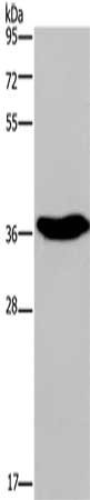Gel: 10%SDS-PAGE, Lysate: 40 μg, Lane: Human fetal brain tissue, Primary antibody: CSB-PA055799(ELAVL3 Antibody) at dilution 1/350, Secondary antibody: Goat anti rabbit IgG at 1/8000 dilution, Exposure time: 3 minutes