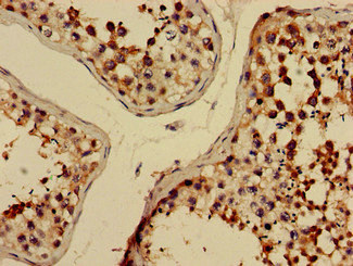 Immunohistochemistry of paraffin-embedded human testis tissue using CSB-PA815588LA01HU at dilution of 1:100
