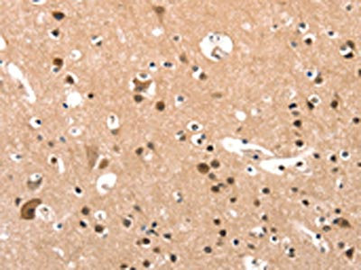 The image on the left is immunohistochemistry of paraffin-embedded Human brain tissue using CSB-PA088085(ELOVL6 Antibody) at dilution 1/25, on the right is treated with synthetic peptide. (Original magnification: ×200)