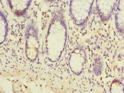 Immunohistochemistry of paraffin-embedded human colon cancer using CSB-PA023898LA01HU at dilution of 1:100