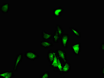 Immunofluorescent analysis of Hela cells using CSB-PA007733LA01HU at dilution of 1:100 and Alexa Fluor 488-congugated AffiniPure Goat Anti-Rabbit IgG(H+L)