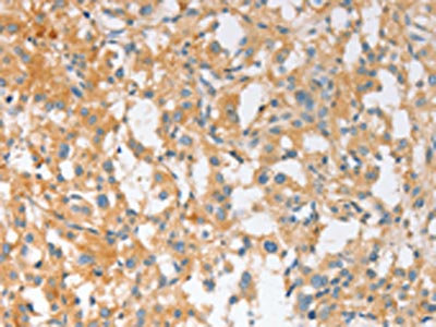 The image on the left is immunohistochemistry of paraffin-embedded Human thyroid cancer tissue using CSB-PA524180(EPS15L1 Antibody) at dilution 1/30, on the right is treated with fusion protein. (Original magnification: ×200)