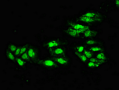 Immunofluorescent analysis of Hela cells using CSB-PA849795HA01HU at dilution of 1:100 and Alexa Fluor 488-congugated AffiniPure Goat Anti-Rabbit IgG(H+L)