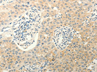 The image on the left is immunohistochemistry of paraffin-embedded Human colon cancer tissue using CSB-PA233398(ERG Antibody) at dilution 1/40, on the right is treated with fusion protein. (Original magnification: ×200)
