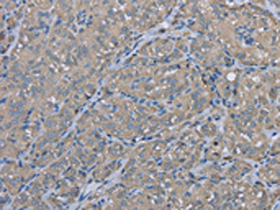 The image on the left is immunohistochemistry of paraffin-embedded Human thyroid cancer tissue using CSB-PA115608(EZR Antibody) at dilution 1/30, on the right is treated with fusion protein. (Original magnification: ×200)