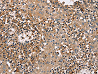 The image on the left is immunohistochemistry of paraffin-embedded Human tonsil tissue using CSB-PA286186(FAIM2 Antibody) at dilution 1/40, on the right is treated with fusion protein. (Original magnification: ×200)
