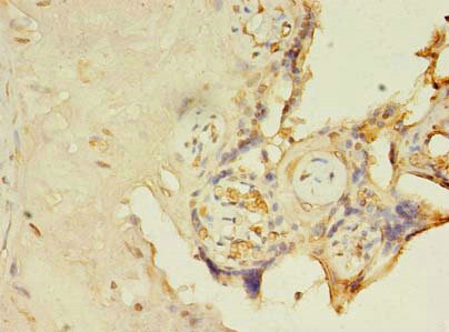 Immunohistochemistry of paraffin-embedded human placenta tissue using CSB-PA873659LA01HU at dilution of 1:100