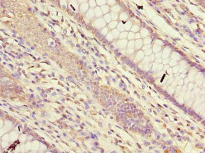 Immunohistochemistry of paraffin-embedded human colon cancer using CSB-PA839295LA01HU at dilution of 1:100