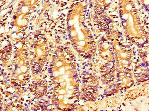 Immunohistochemistry of paraffin-embedded human small intestine tissue using CSB-PA740923LA01HU at dilution of 1:100