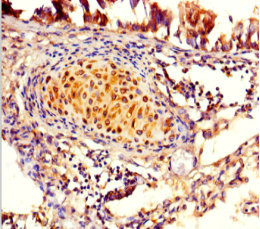 Immunohistochemistry of paraffin-embedded human lung tissue using CSB-PA661553LA01HU at dilution of 1:100
