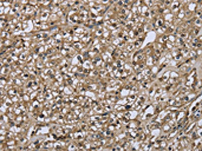 The image on the left is immunohistochemistry of paraffin-embedded Human liver cancer tissue using CSB-PA056820(FBP1 Antibody) at dilution 1/30, on the right is treated with fusion protein. (Original magnification: ×200)