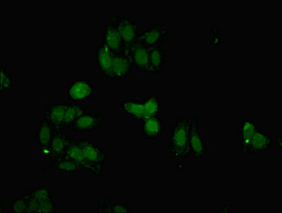 Immunofluorescent analysis of Hela cells using CSB-PA848401LA01HU at dilution of 1:100 and Alexa Fluor 488-congugated AffiniPure Goat Anti-Rabbit IgG(H+L)