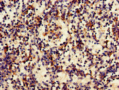 Immunohistochemistry of paraffin-embedded human spleen tissue using CSB-PA008543LA01HU at dilution of 1:100