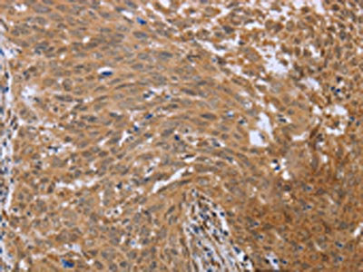 The image on the left is immunohistochemistry of paraffin-embedded Human cervical cancer tissue using CSB-PA664930(FHL2 Antibody) at dilution 1/40, on the right is treated with fusion protein. (Original magnification: ×200)