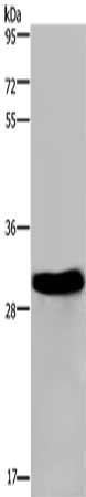 Gel: 8%SDS-PAGE, Lysate: 40 μg, Lane: Mouse heart tissue, Primary antibody: CSB-PA798885(FHL2 Antibody) at dilution 1/2400, Secondary antibody: Goat anti rabbit IgG at 1/8000 dilution, Exposure time: 3 seconds