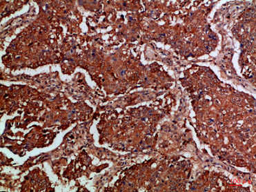 Immunohistochemical analysis of paraffin-embedded Human-lung-cancer, antibody was diluted at 1:100