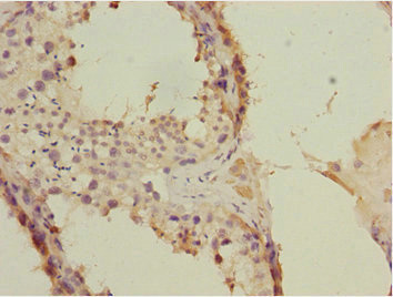 Immunohistochemistry of paraffin-embedded human testis tissue using CSB-PA892364ESR1HU at dilution of 1:100