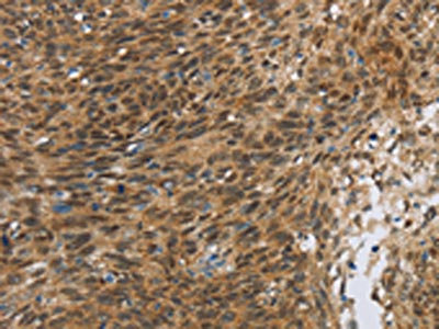 The image on the left is immunohistochemistry of paraffin-embedded Human cervical cancer tissue using CSB-PA990722(FOXB1 Antibody) at dilution 1/30, on the right is treated with synthetic peptide. (Original magnification: ×200)