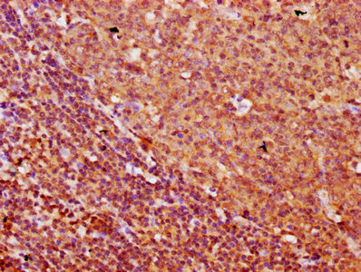 IHC image of CSB-PA686013LA01HU diluted at 1:500 and staining in paraffin-embedded human tonsil tissue performed on a Leica BondTM system. After dewaxing and hydration, antigen retrieval was mediated by high pressure in a citrate buffer (pH 6.0). Section was blocked with 10% normal goat serum 30min at RT. Then primary antibody (1% BSA) was incubated at 4°C overnight. The primary is detected by a biotinylated secondary antibody and visualized using an HRP conjugated SP system.