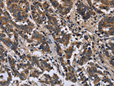The image is immunohistochemistry of paraffin-embedded Human liver cancer tissue using CSB-PA570140(FRK Antibody) at dilution 1/50. (Original magnification: ×200)