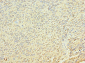 Immunohistochemistry of paraffin-embedded human cervical cancer using CSB-PA009005LA01HU at dilution of 1:100