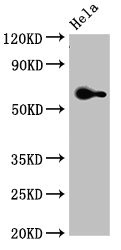 Immunofluorescent analysis of PC-3 cells using CSB-PA890755LA01HU at dilution of 1:100 and Alexa Fluor 488-congugated AffiniPure Goat Anti-Rabbit IgG(H+L)