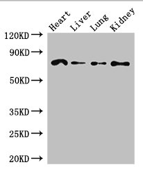 Positive WB detected in: Mouse heart tissue, Mouse liver tissue, Mouse lung tissue, Mouse kidney tissue