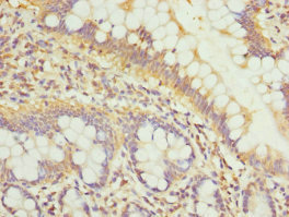 亞細(xì)胞定位:Golgi apparatus, Golgi stack membrane; Single-pass type II membrane protein. Note=Resides preferentially in the trans and medial parts of the Golgi stack.
