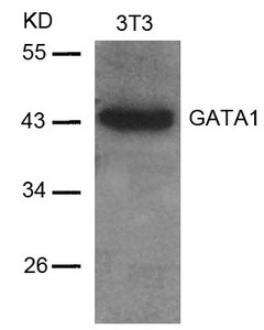 Western blot analysis of extracts from 3T3 cells using GATA1(Ab-142) Antibody.