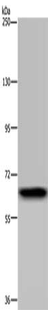 Gel: 6%SDS-PAGE, Lysate: 40 μg, Lane: Human placenta tissue, Primary antibody: CSB-PA934669(GBP5 Antibody) at dilution 1/300, Secondary antibody: Goat anti rabbit IgG at 1/8000 dilution, Exposure time: 5 minutes