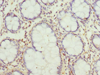 Immunohistochemistry of paraffin-embedded human colon cancer using CSB-PA844048ESR1HU at dilution of 1:100
