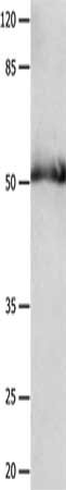 Gel: 8%SDS-PAGE, Lysate: 40 μg, Lane: Human fetal muscle tissue, Primary antibody: CSB-PA245851(GDF6 Antibody) at dilution 1/300, Secondary antibody: Goat anti rabbit IgG at 1/8000 dilution, Exposure time: 2 minutes
