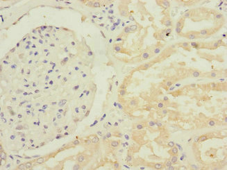Immunohistochemistry of paraffin-embedded human kidney tissue using CSB-PA856889ESR1HU at dilution of 1:100