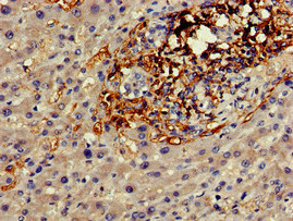 Immunohistochemistry of paraffin-embedded human liver cancer using CSB-PA009449LA01HU at dilution of 1:100