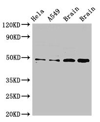 Positive WB detected in: Hela whole cell lysate, A549 whole cell lysate, Rat brain tissue, Mouse brain tissue