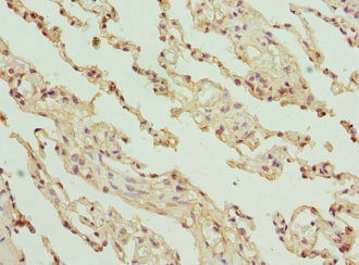 Immunohistochemistry of paraffin-embedded human lung tissue using CSB-PA009563ESR2HU at dilution of 1:100