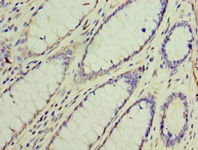 Immunohistochemistry of paraffin-embedded human colon cancer using CSB-PA009677ESR2HU at dilution of 1:100