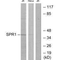 免疫原:Synthesized peptide derived from internal of Human SPR1.